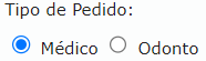 Nela, o operador deverá selecionar a opção Tipo de Pedido, informar o beneficiário para realizar sua pesquisa. Além disso, é possível informar também o número do pedido e o intervalo de datas dos pedidos a serem pesquisados. Após clicar no botão Pesquisar, os resultados encontrados de acordo com os filtros de pesquisa definidos serão listados na tabela.