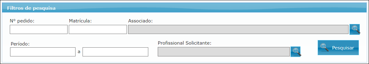 Profissional solicitante - filtro para definição do profissional solicitante do pedido a ser pesquisado.
